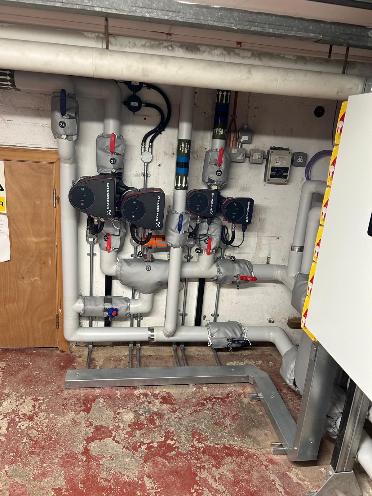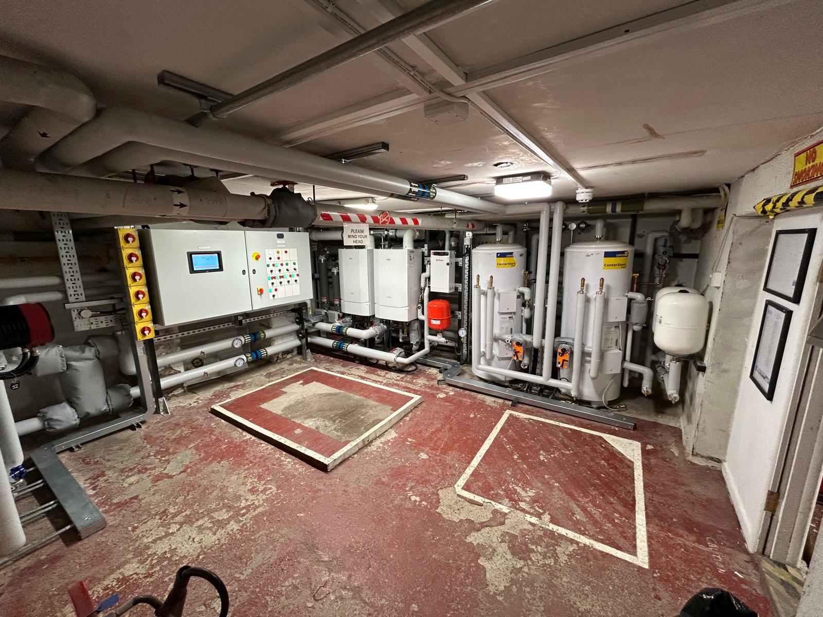 Working within these constraints, our engineering team undertook a complete reconfiguration of the plant room, installing new Ideal commercial boilers and integrating them seamlessly with the existing primary and secondary circuits. The design retained key elements of the original system, including the hot water cylinder, ensuring optimum performance while avoiding unnecessary expenditure for the client.